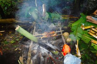 You will cut your way in to the jungle following minimal trails if any at all. You will help find a suitable campsite for the night where you will receive instructions on creating a shelter from your natural surroundings (if it is the rainy season we may take additional items to keep you dry during the night). If there is enough daylight your guide may show you some tracking tips, traps, and hunting techniques (an occasional squirrel might be on the menu). He will then show you some bush-craft skills with bamboo to include boiling water and cooking. After a night in the jungle he will then lead you out of the jungle to end your second day. This adventure is a minimum of 2 days and can last as many days as you want.